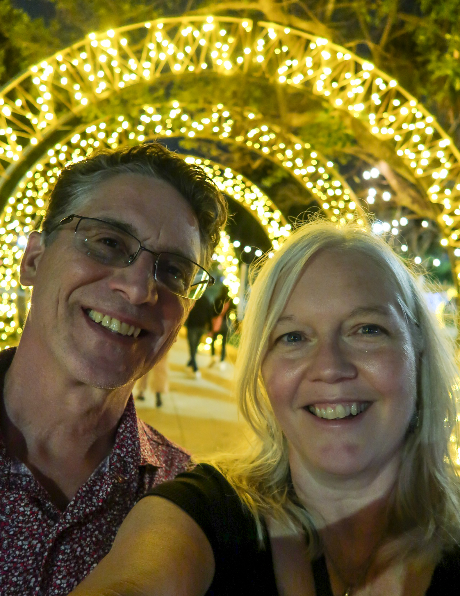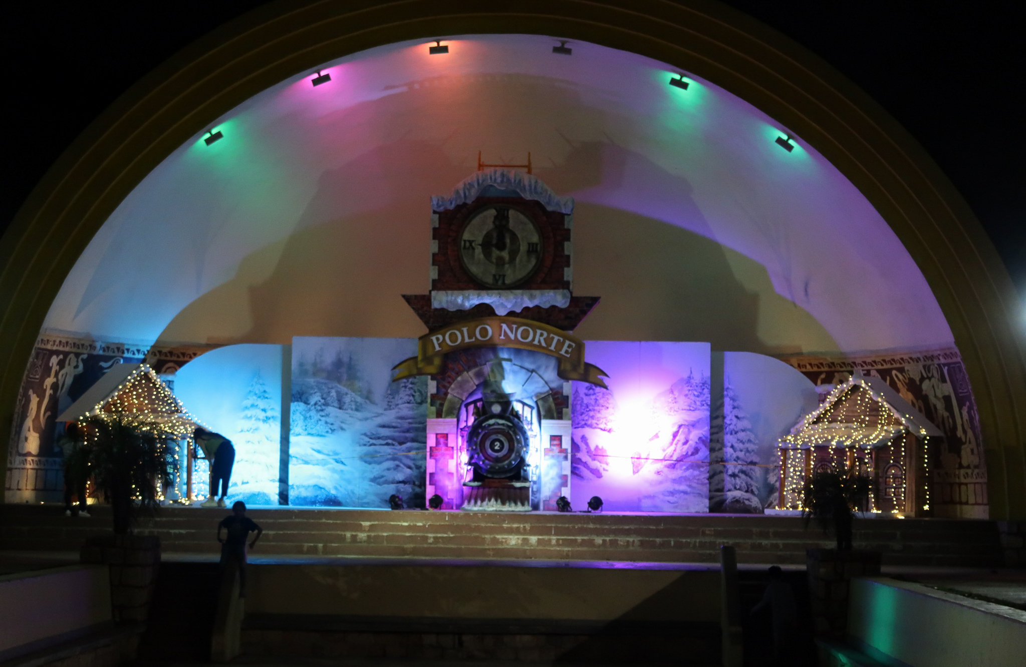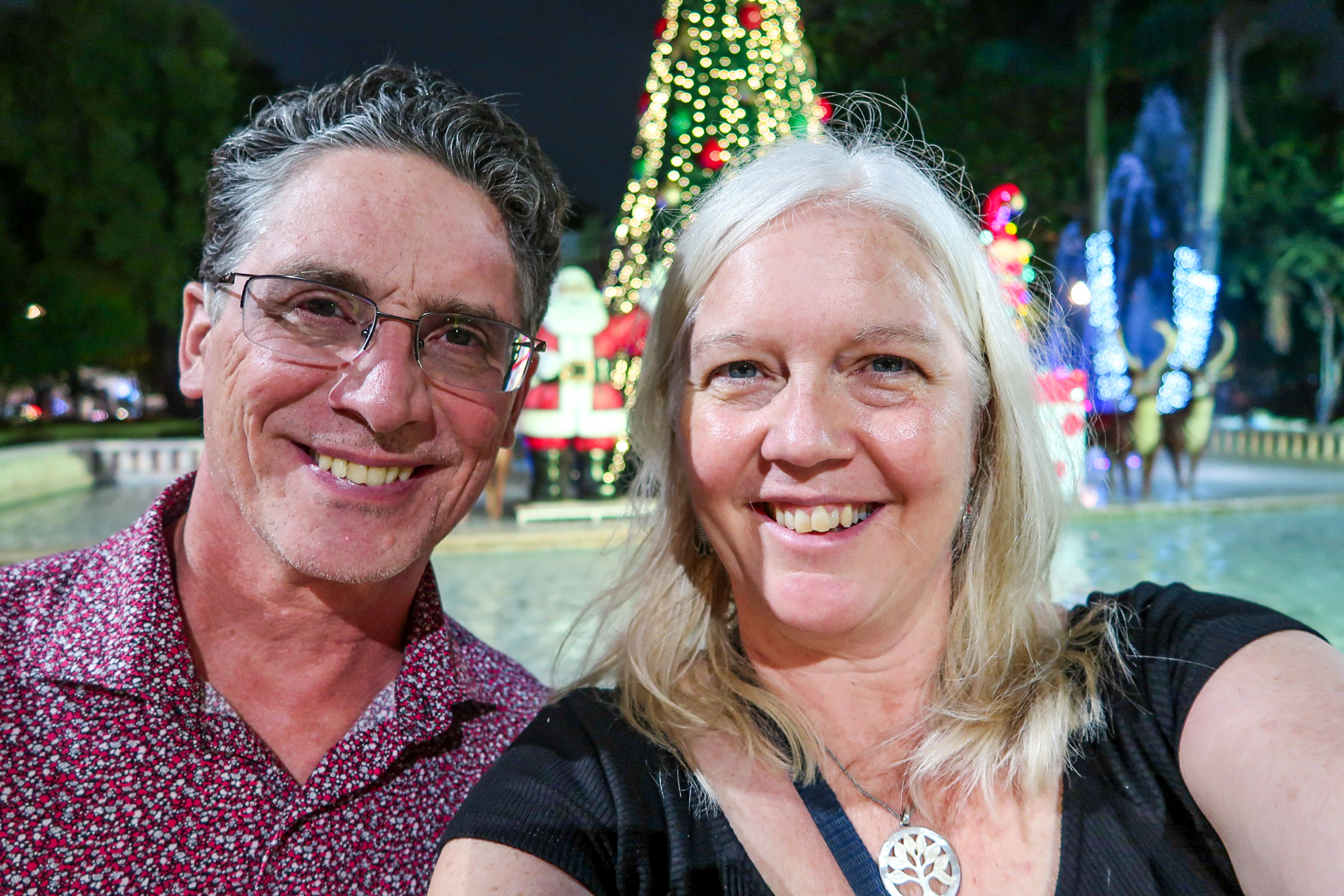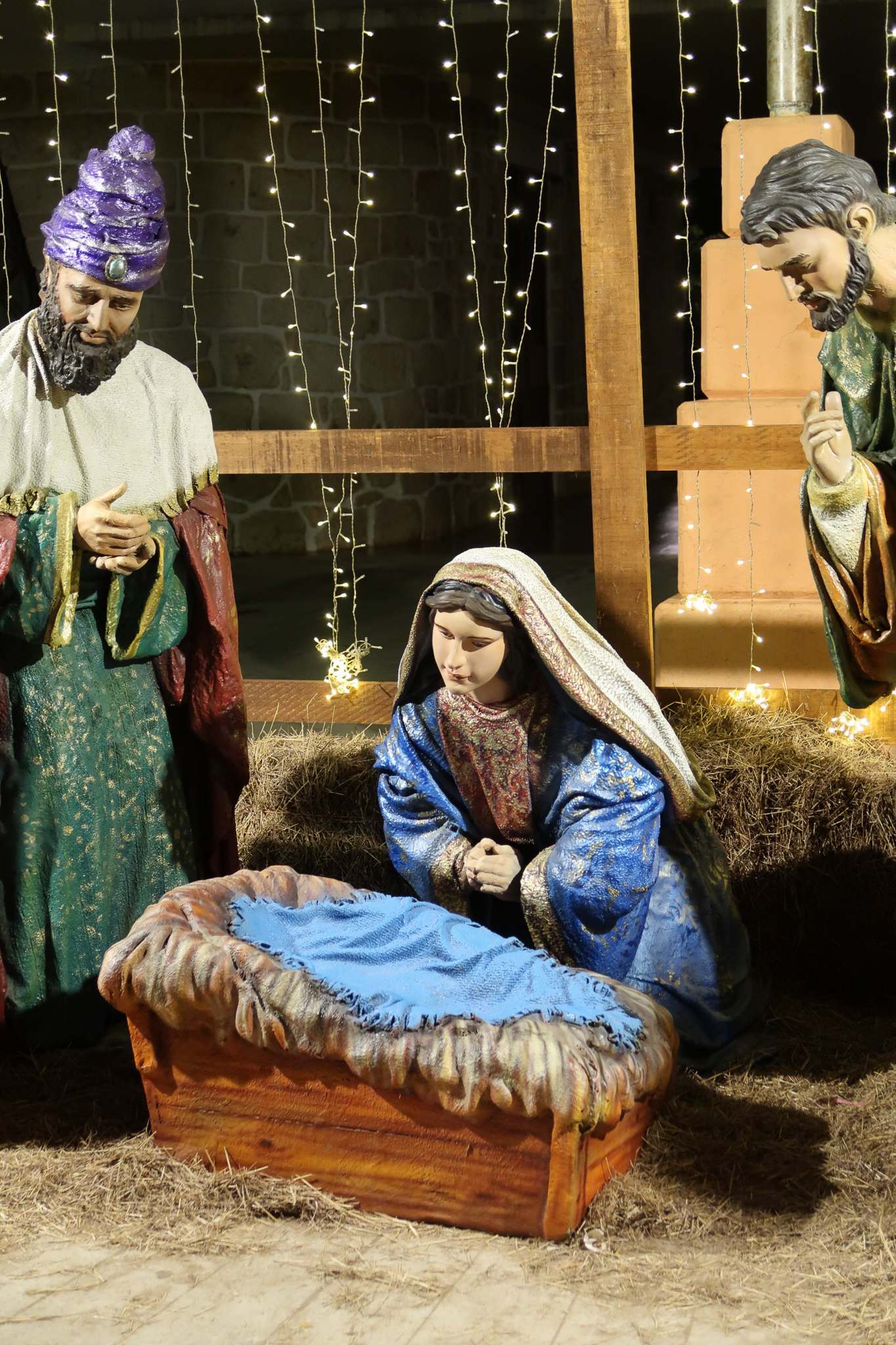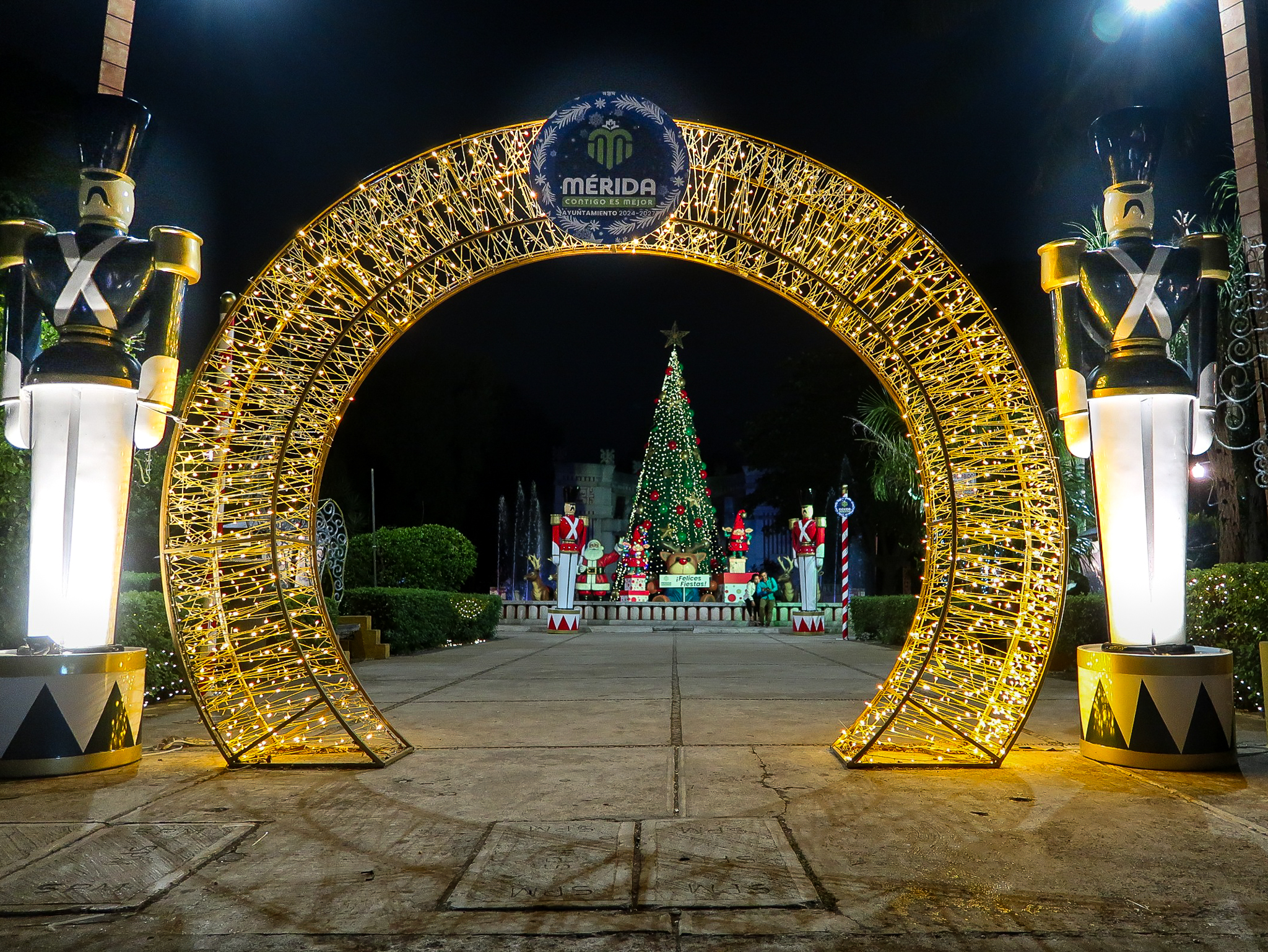 Seeing Christmas decorations in Merida has been both strange and joyful. There is something strange about seeing cold climate stalwarts such as Santa, snowmen and reindeer taking prominence in a tropical climate. The lights at night are beautiful and families take advantage of the pleasant evening temperatures and enjoy the festive atmosphere in the parks. Here in Mexico, Jesus is the reason for the season and it goes beyond Christmas Day and into the Epiphany, Dias de los Reyes. We wandered around last night and took some shots of the colorful lights and nativity display. Jesus seemed to be missing from the manger.