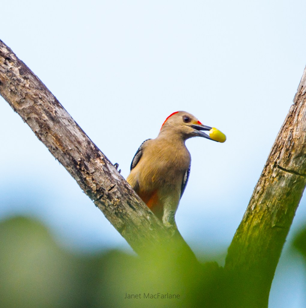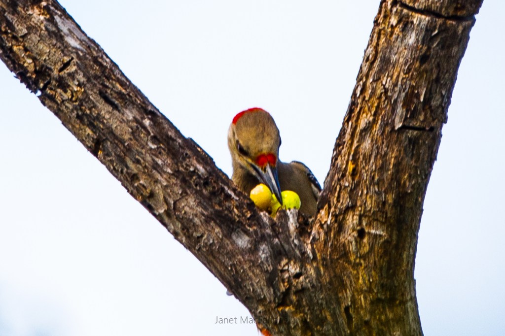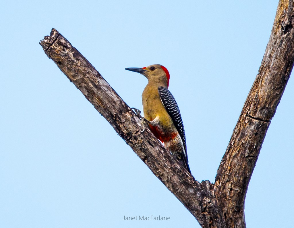 Similiar looking to our Red-Bellied Woodpecker, is the Golden Fronted Woodpecker. While it does not to seem to have the gold colors, there are apparently regional variations. This one was stashing a cache of fruits in this dead tree.