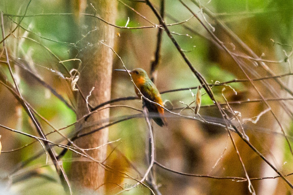 I managed to get what I like to refer to as a “souvenier shot” of this Cinnamon Hummingbird. Between the undergrowth and their speed, it was really hard to get a bead on them.