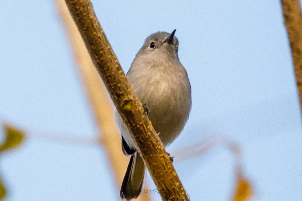 Another bird whose breeding grounds are in the north, is the very tiny and adorable Blue-gray Gnatcatcher. I usually see them high up in the trees when they come to Michigan. It is hard to catch a photo then. During breeding season, the males have a black band over their eyes that make them look angry.