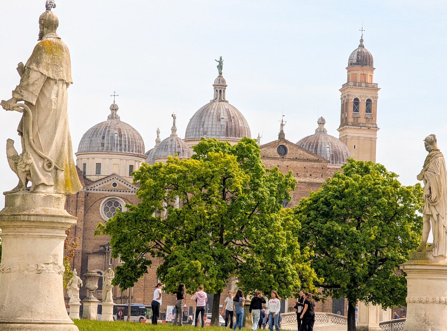 Padova is a city of art, science, and religious heritage. Art is embedded in the everyday. Simply walking around, going about ones daily business, opens one up to seeing walls and structures that have been around for centuries. I found myself at the local roller-skating track surrounded by centuries old walls in view of St. Giustina‘s Abbey.