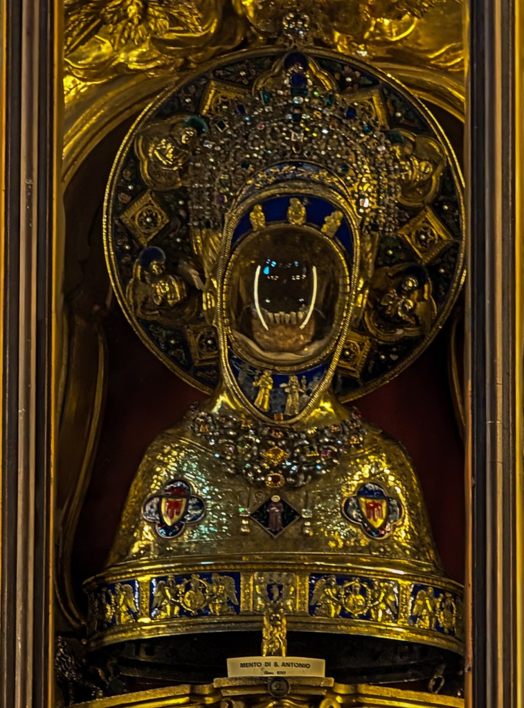 Padova is a city in Northern Italy, located in the Veneto region. It is home to the 13th Century Basilica of St. Anthony, which contains his tomb, as well as his jaw bone,(pictured), which I discovered on my explorations!