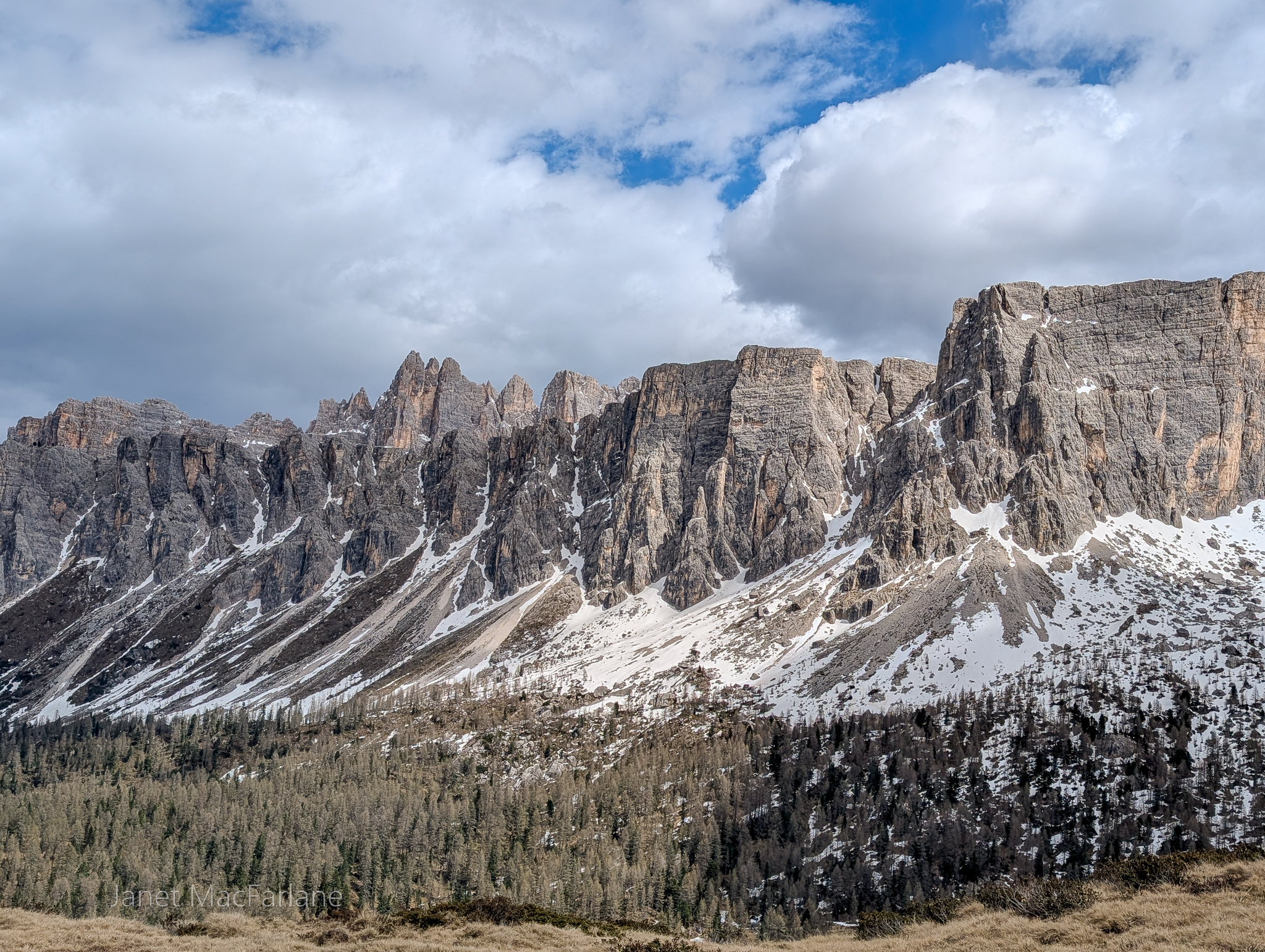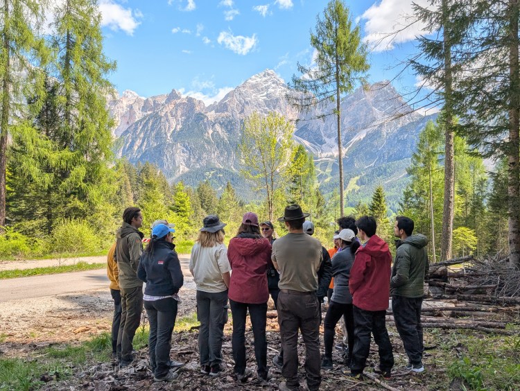 I was fortunate to be able to join David and his Functional Ecology of Trees class to the Dolomiti. The Dolomiti, also known as the Dolomite Mountains, Dolomite Alps or Dolomitic Alps, are a mountain range in northeastern Italy. They form part of the Southern Limestone Alps and extend from the River Adige in the west to the Piave Valley in the east. As part of the forestry course that David is teaching at the University of Padova, David brought his class of international graduate students to different altitude zones of the mountains to see what species were growing there. First we went to a mixed forest stand in the Mountane Altitude zone(1115m elevation) and then we went up to the tree-species line in the Subalpine-Alpine zone of (2295m elevation). From there we descended through Subalpine and High-montane zones. The focus, of course, was on the trees and how they survive and adapt to these conditions.