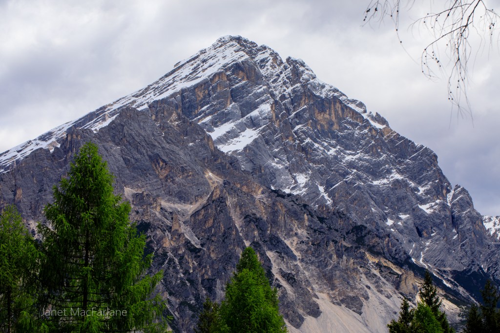 We traveled by a bus. There is an infrastructure in place to support visitors. In fact, were travelled through Cortina, where a portion of the next Winter Olympics will be held. Let me just say that I am glad that we were on a small bus rather than one of those massive tour busses. The roads are narrow, twisty and winding! I am not what one would call an adventuresome driver, so even on the little bus, I would have to avert my eyes now and again. The scenery was absolutely stunning. I just wanted to snap pictures of it as we passed. They would be garbage pictures for sure, so I contained the urge and just absorbed the beauty as we drove by.