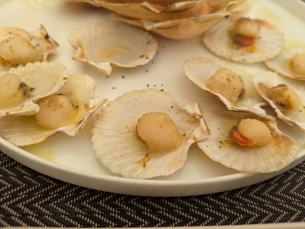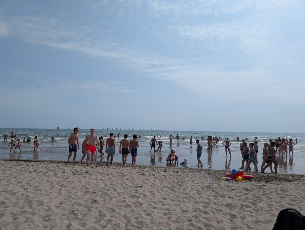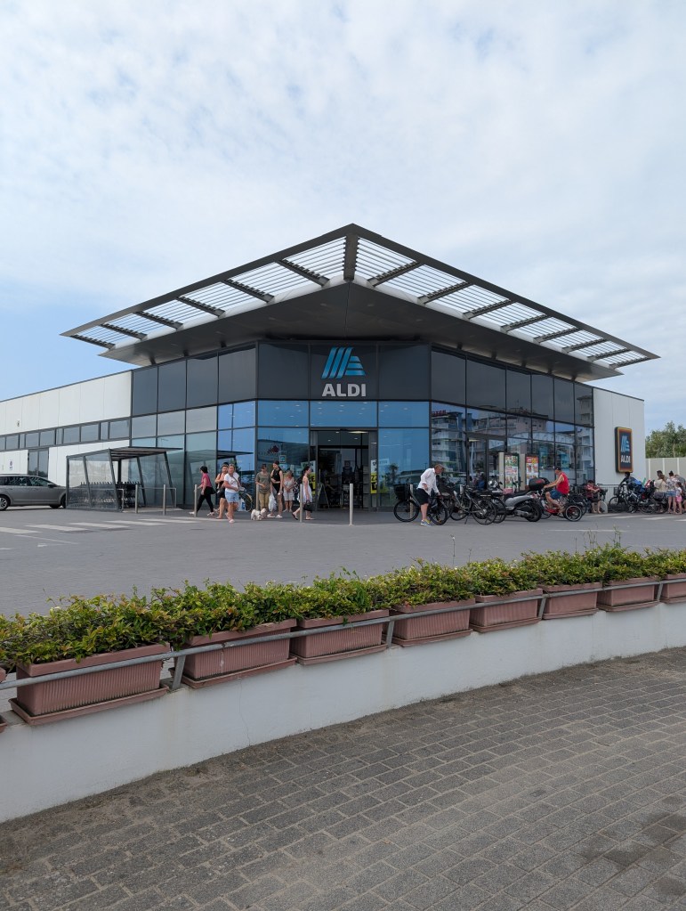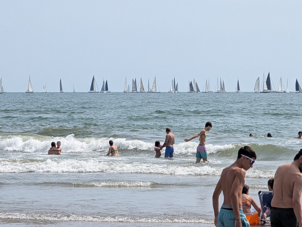 We were adventurous on Saturday and took a public bus to Sottomarina, the nearest seaside town on the Adriatric. We planned to take a boat ride, eat fresh seafood and do some sightseeing in the adjacent town of Chioggia. With our bus tickets in hand, (5 Euros one way) we got on a bus fully packed with lots of young people headed to the beach . It was standing room only. We squeezed ourselves in and held onto whatever we could. We sped down the roadway and lurched to a stop at each bus stop along the way; And somehow, miraculously, we squeezed more people on. At one stop, the bus police, who get on to check people’s tickets, couldn’t even get on. Instead, one of the officers made people get away from the front of the bus, packing us in more tightly, and half-heartedly told the driver he had too many people. We continued on. Someone smelled like onions. An older man thought his earphones were connected to his phone, but the loud music from the reels he was watching would blare out. It was a chatty crowd full of mostly good energy. Occasionally, someone would get off. Eventually, the guy who was sitting atop the carpeted hump above the wheel well got off. We took the opportunity! David slid all the way back to the window and I sat in front of him, between his outstretched legs. It was nice to sit down. The traffic got thicker. We crawled closer to our destination, and we were released from our sardine can. Sottomarina is so built up. The beachfront is lined with beach clubs and restaurants. You can pay to reserve an umbrella, cabana, etc. Hotels span the strip with bikes, motorscooters, and motorcycles traversing the roads almost in equal number to cars. There is an Aldi on the beach! We took a walk down to the water to get our feet wet in the Adriatic. So many people!