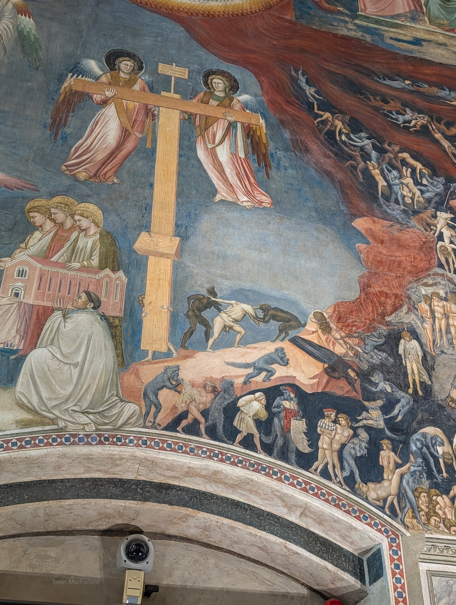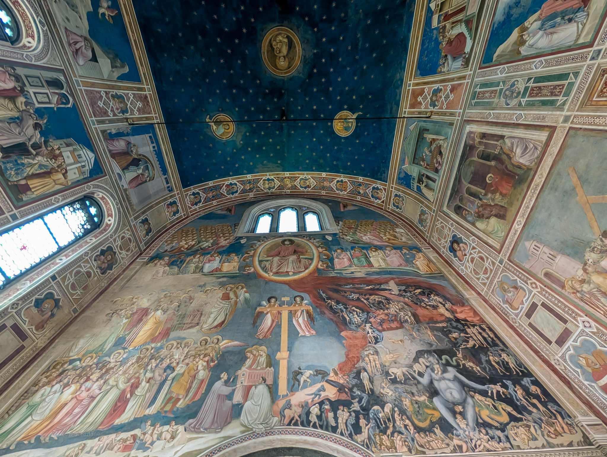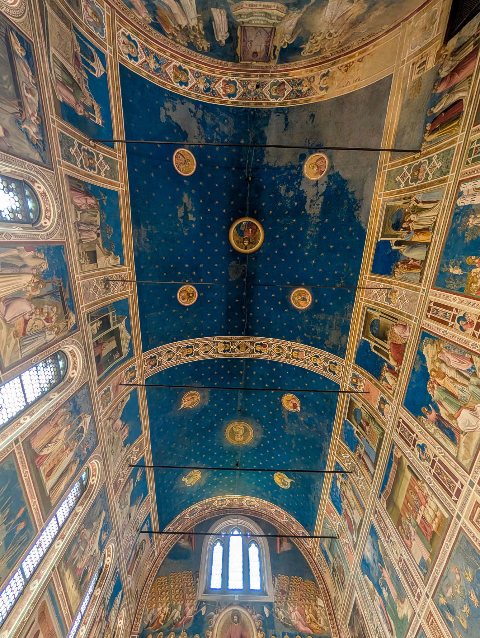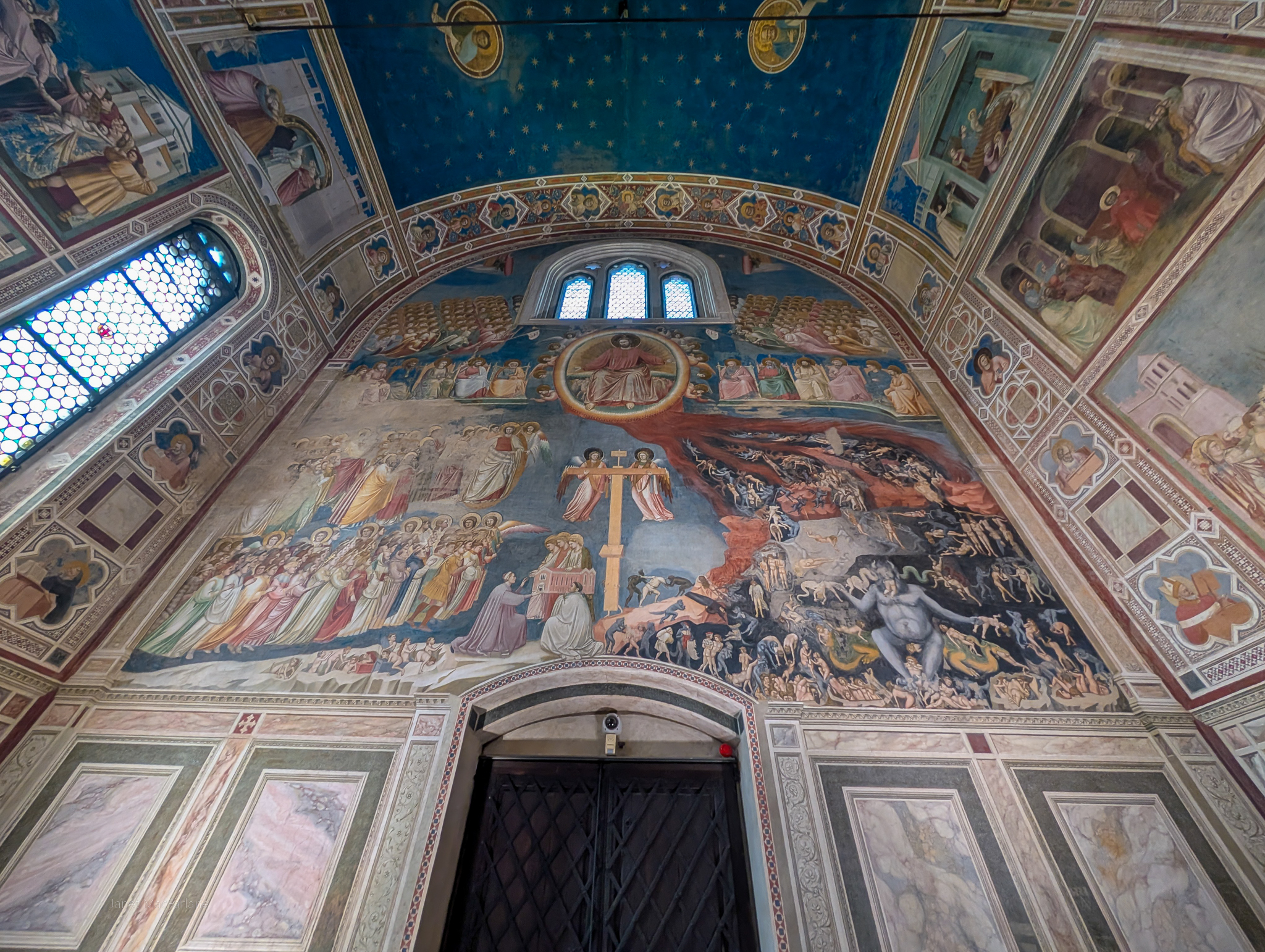 Now that we are back in Padua with less than a month to go, we are trying to get to sites we haven’t seen and are filling the days between David’s research and final exam day with excursions and trips where we can. The weather has turned quite hot, as to be expected in the summer, so visiting some of the indoor places is really welcome. We finally got to the Scovegni Chapel. That color blue! Giotto’s extraordinary frescoes! So brilliant!